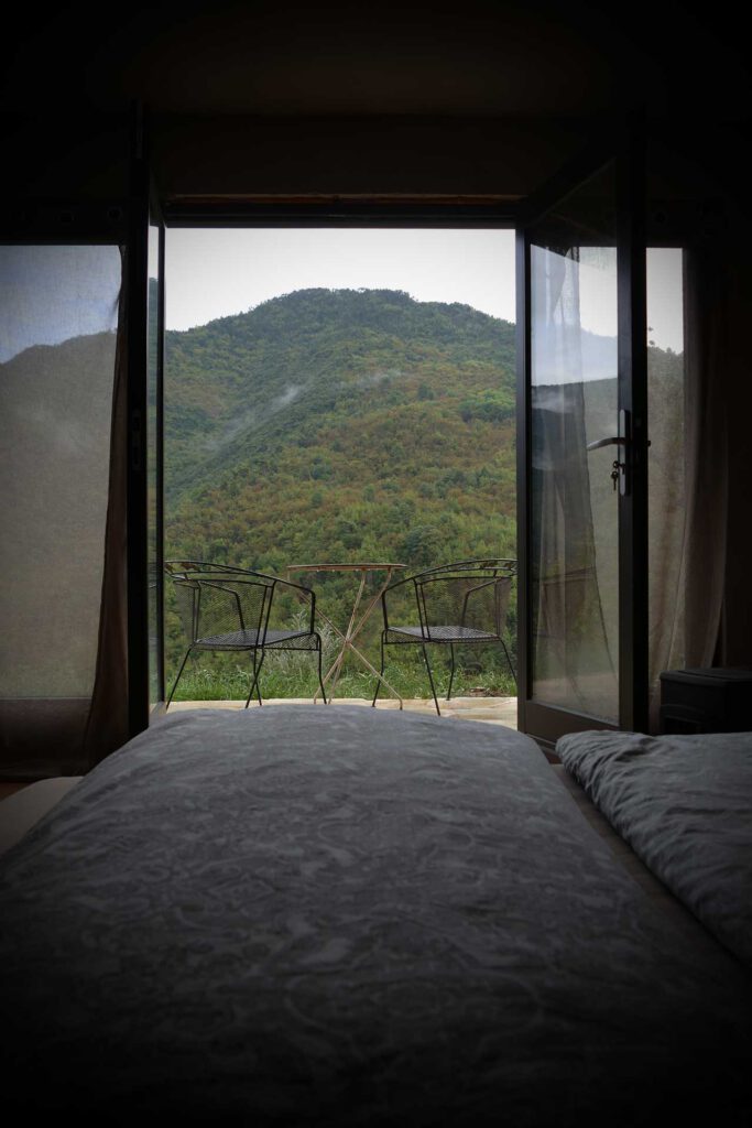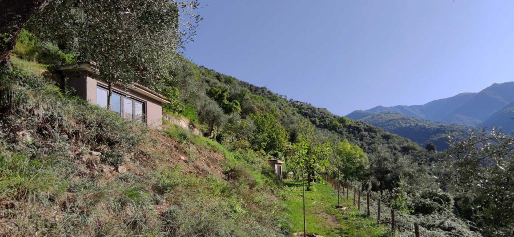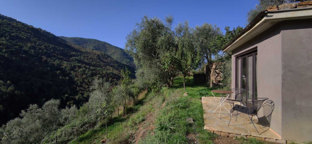 Die beiden Mini Houses sind in die Ebenen eingebettet und haben einen wunderschönen Talblick. Sie verfügen über eine Badkabine mit WC und Dusche. Zur Mitbenutzung befinden sich im Haupthaus eine Gemeinschaftsküche mit Aufenthaltsraum und ein großes Kaminzimmer. Die Mini Houses verfügen jeweils über eine eigene Terrasse mit wunderschönem Ausblick in die ligurischen Alpen.